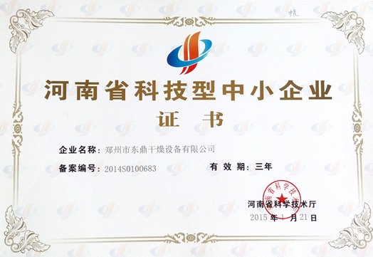 用技術(shù)創(chuàng)新做為企業(yè)再次騰飛的跳板,2015褐煤烘干機(jī)廠家鄭州市東鼎干燥設(shè)備有限公司評(píng)為河南省科技型中小企業(yè)。這是我公司繼2013年度被評(píng)為國家高新技術(shù)企業(yè)之后,再次在科研創(chuàng)新方面取得突破性的榮譽(yù),標(biāo)志著我公司在科技創(chuàng)新能力又邁上了一個(gè)新的臺(tái)階。